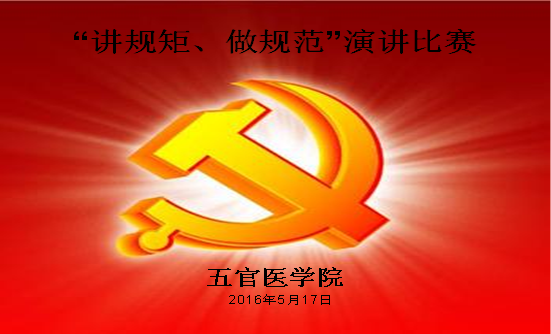 (通讯员涂芳)为增加beat365教职工遵规守矩及工作规范的意识,切实加强规范管理和作风建设,五官医学院党总支于5月17日晚7:00在教2-304开展“讲规矩 做规范”演讲比赛,暨湖北科技学院第十七个党风廉政建设宣传教育月活动。