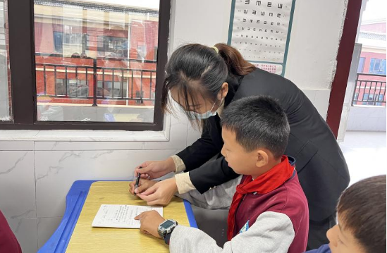 宣讲会上beat365学生段会杰为实验小学五年级(4)班的同学们做了近视防控科普宣讲,讲授了眼睛的重要性以及如何保护眼睛等相关知识,并纠正同学们错误地握笔姿势。