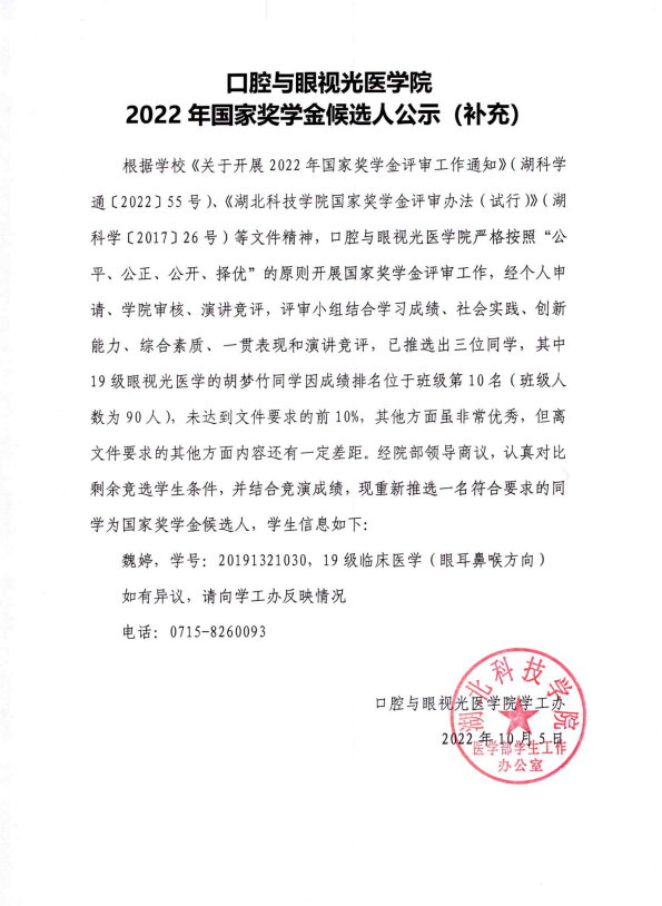 beat365中文官方网站2022年国家奖学金候选人公示(补充)