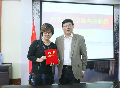 (通讯员佘同辉)4月28日下午,学校隆重举行客座教授聘任仪式,正式聘任美维口腔集团总裁、牙种植专家朱丽雅女士为客座教授,吴基良校长为朱丽雅女士颁发聘书。聘任仪式由钟儒刚副校长主持,江西美维中山医院管理有限公司刘炳华总经理、颜宝最副总经理以及学校人事处韩冰华处长、五官医学院周燕红院长等参加仪式。