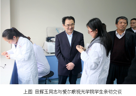 (通讯员佘同辉)“在这里学习、生活,好不好?”“好!”“喜不喜欢呆在这里呀?”“喜欢!”“谢谢学校为我们提供这么好的条件。”田辉玉同志亲切地与爱尔眼视光学院的同学们交谈着。