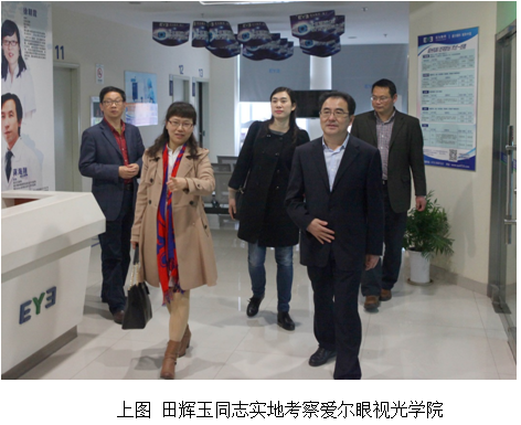 4月6日下午,党委书记田辉玉同志在学校办公室陈睦富主任、孙智副主任的陪同下,对五官医学院进行了调研,并实地考察了爱尔眼视光学院。五官医学院院长周燕红同志作了《三驾马车齐奋蹄,转型发展谱新篇》的主题汇报,党总支书记范杉及其他班子成员、三办主任、学科负责人、教研(实验)室主任等参加了调研会。