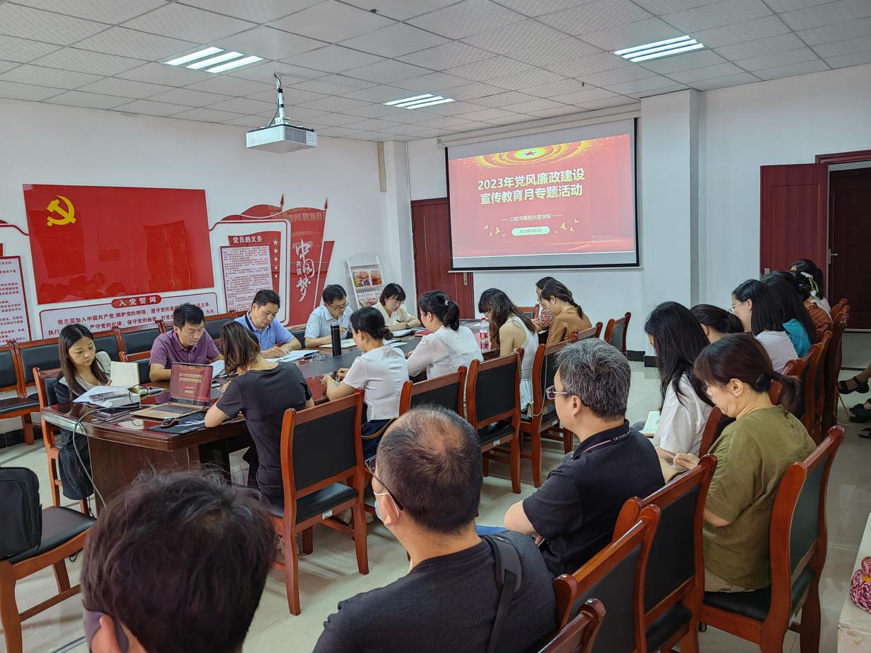 会上,首先由院党委纪检委员程鹏同志宣读《2023年口腔与眼视光医学院党风廉政建设宣教月活动实施方案》,认真学习贯彻习近平总书记关于全面从严治党重要论述、党的二十大、中央纪委二次全会精神、党章党规党纪教育,教育所有教职员工要明底线、知敬畏,做到廉洁从教,遵规守纪,切实落实省委、市委、学校党委关于纪律教育工作要求。根据口腔与眼视光医学院《活动实施方案》的具体安排,我院将在今年9月分层分类开展警示教育、纪律教育、廉政主题宣传、鼓励担当作为宣传等“廉政教育宣传月”系列活动。
