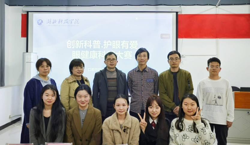 最后,在场的5名老师与选手们进行了合照,告示着本次复赛圆满结束。此次眼健康科普大赛的成功举办,不仅为广大湖科学子提供了一个学习眼健康知识的平台,也提高了大家对眼健康的重视程度。未来,我们将不断普及眼健康知识,提高大家的眼健康意识。