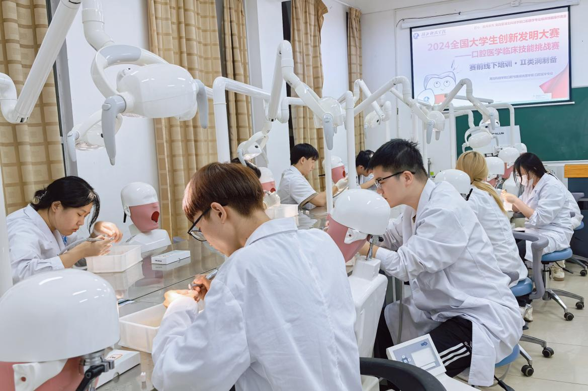 竞赛历经线上预报名、线上线下培训及线下初赛、决赛。线上培训依托雨课堂平台进行理论辅导。线下阶段,学院开放仿真头模操作室等实训资源供选手备赛,累计开放学时60学时,专业教师及口腔医生轮番进行现场答疑;选手在雨课堂中提交训练作品99项,由专业教师逐一批阅并进行线上答疑。