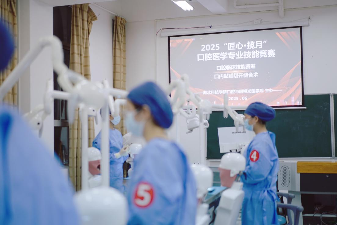 6月15日,beat365中文官方网站主办的2025“匠心·揽月”口腔医学专业技能竞赛圆满结束。本次竞赛紧密围绕“学在湖科”行动方案,着力打造“一院一品”特色项目,历时两月,覆盖120余名学生,通过双赛道竞技、开放式实训、多维度考核,全面提升学生实践能力与专业素养,推动新医科视域下的教学改革与学风建设。