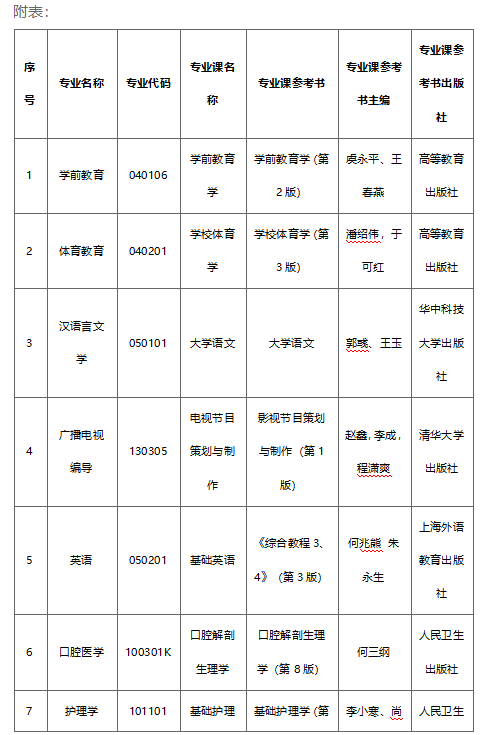 各专业考试科目除湖北省统考科目外,还需要进行专业课科目考试,具体科目及参考书籍信息参见附表。退役大学生士兵考试科目按照湖北省教育厅相关工作安排实施,详细内容请参见beat3652025年普通专升本招生简章。