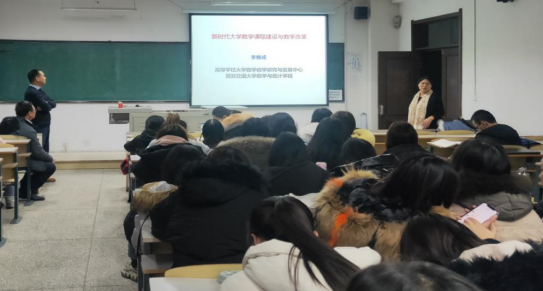 报告会中,李继成教授指出在线课程改变了我们的教育模式和学习方式,并细致深刻地分析了高等教育教学的新形势,是互联网+信息技术+人工智能。进一步,李继成教授向师生们讲述了大学数学教学的改革方向,新一轮的科技革命和产业变革正在呼唤并推进高等教育模式方法的创新。他提出要在课堂教学中坚持以人为本,解决好人才培养最后一里路,造就堪当民族复兴大任的时代新人,就要求每一位一线教师都应该勇立时代潮头,全方位推进课程改革,打造一流课程,打造一流团队。