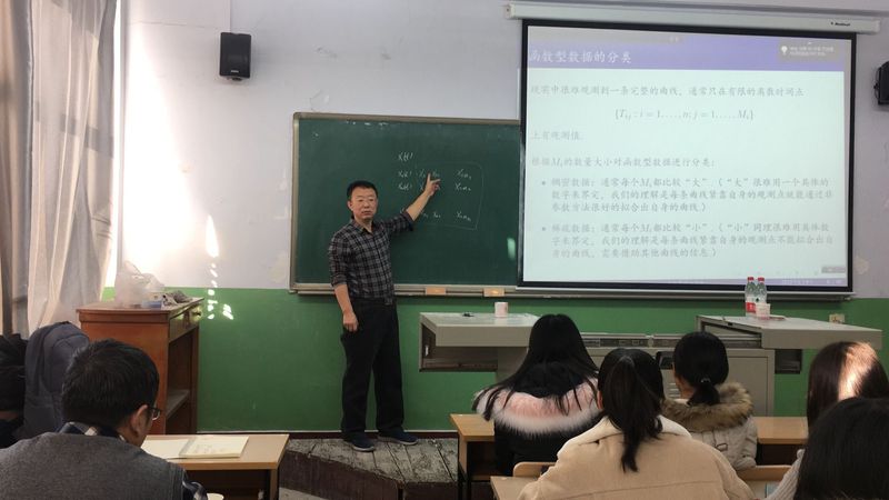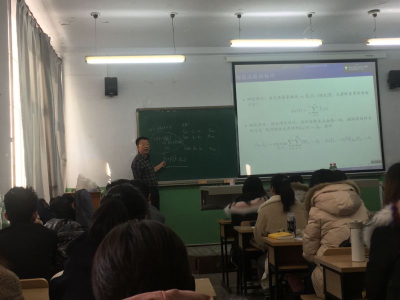 报告会中,张日权教授结合他多年的学习,教学和研究经验,向同学们介绍了函数型数据的概念。其中,张日权老师通过举心电图例子引入一维数据,又分别举例介绍二维及多维的概念。现实中很难观测到一条完整的曲线,只观测到的是集散的点。面板数据,纵向数据是函数型数据的特殊情况。函数型数据分成稠密数据和稀疏数据,并举出男女孩身高增长图作为实例。首先,对函数型数据分情况进行估计,并运用主成分方法对无限维进行降维成有限维,得出函数型主成分得分。接下来,张老师又对函数型数据进行回归模型的估计,分成四大类进行讲解,并对模型进行检验。最后,澳门十大信誉好的网站的老师和同学们与张日权老师进行了互动,同学们及时提出了自己的疑惑,张日权老师也对同学们提出的问题进行了详细的解答,又为同学们在这个方向上的学习给出了指导性的建议。并激励同学们要担负起数学与统计人才应有的使命,为我国的数学与统计学建设作出应有的贡献,也希望大家能够脚踏实地的学习理论知识,为数学与统计学的发展不懈努力。