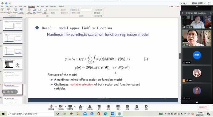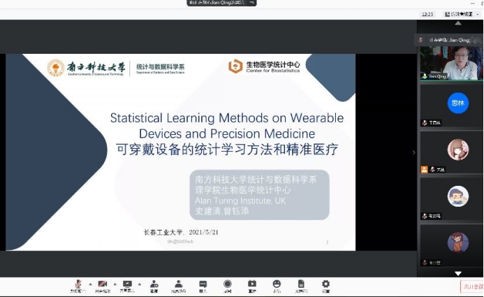 2021年5月 21日下午 3点,南方科技大学统计与数据科学系史建清教授应邀通过腾讯会议的方式为十大信誉做了题为“Statistical Learning Methods on Wearable Devices and Precision Medicine”的专题报告。澳门十大信誉好的网站师生参加了报告会,澳门十大信誉好的网站院长王纯杰教授主持了报告会。