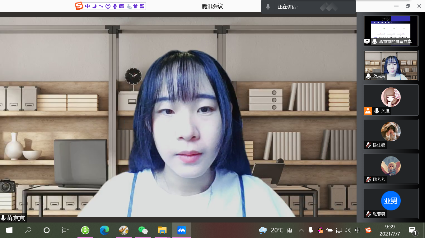 2021年7月7日上午9点,我院博士蒋京京为大家做线上学术报告,学院部全体研究生参加了本次线上学术报告会。