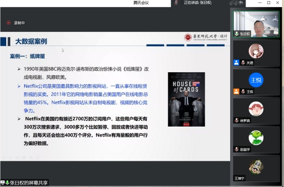 会后,张日权教授与参会师生进行互动,气氛活跃,热情高涨。本次线上报告会有助于全体数统学院师生深入了解统计学与大数据应用的相关内容,讨论了有关于与企业合作项目中遇到的一些问题,同时也详细解答了分布式储存的相关问题。张日权教授的报告开阔了师生的学术视野,拓宽了科研思路,对于澳门十大信誉好的网站开展各种教学和科学研究工作都具有重要的启示作用。