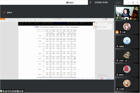 2022年5月20日下午15:00,我院特邀西南财经大学林华珍教授做线上学术报告,报告由学院院长王纯杰主持。校教学指导委员会主任董小刚、统计系主任杨凯共同探讨了学院发展,并获得指导性意见。学院众位老师及研究生共116人参加本次线上学术报告。