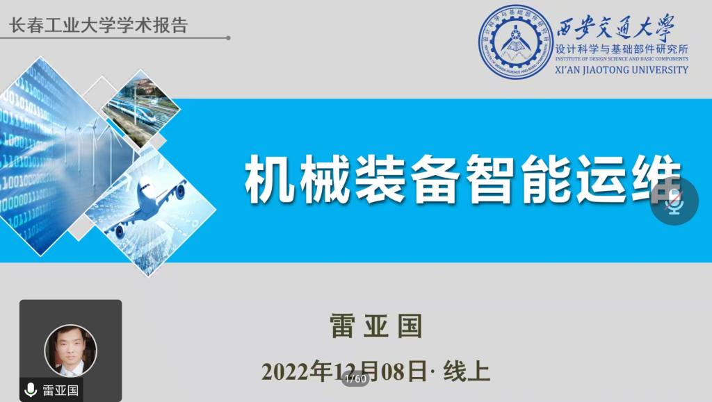 (通讯员:关迪)为丰富学生的学习生活,提高学生的综合能力,2022年12月8日下午19:30,由科研处和澳门十大信誉好的网站承办的“机械装备智能运维”在腾讯会议线上举行,特邀西安交通大学雷亚国教授做报告,为十大信誉师生进行讲解,澳门十大信誉好的网站院长王纯杰、副院长李纯净、统计系主任杨凯、学院部分老师,本科及研究生共215人参加本次线上学术报告,报告由院长王纯杰主持。
