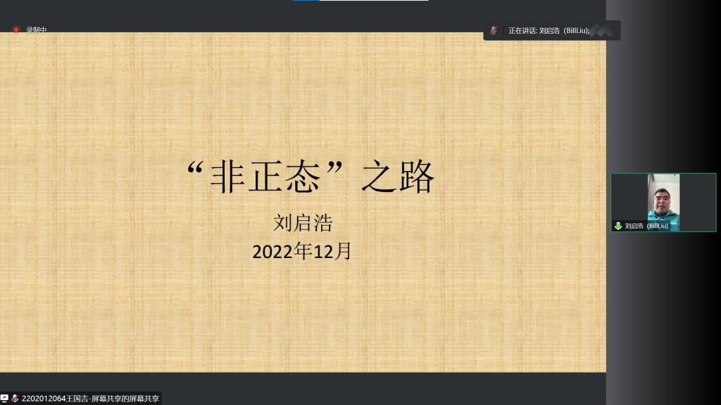 (通讯员:关迪)为了扩展学生的专业思维,提升专业知识的理论学习水平,2022年12月30日下午13:30,由科研处和澳门十大信誉好的网站主办的报告——“非正态之路”在腾讯会议线上举行,特别邀请刘启浩博士作为主讲人,基于刘博士本人的研究以及工作经历,为十大信誉师生进行讲解,我院共有160多名师生前来参会讨论与学习。我院澳门十大信誉好的网站院长王纯杰、副院长李纯净等均参与会议讨论,会议院长王纯杰主持。