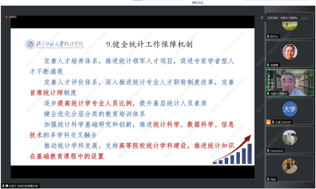 报告人简介:宋旭光,教授,博士生导师。北京师范大学统计学院院长,中国教育经济信息研究中心主任。兼任国家统计专家咨询委员会委员、国务院学位委员会学科评议组成员、中国统计学会副会长,中国国民经济核算研究会副理事长、教育部高等学校统计学类专业教学指导委员会委员、《统计研究》、《数量经济技术经济研究》、《调研世界》等杂志编委。研究成果集中于政府统计、教育统计、国民经济核算等领域,发表学术论文百余篇,获省部级教学科研奖励十余项,三次担任国家社会科学基金重大项目首席专家。