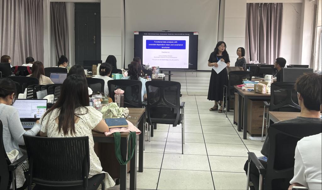 林教授此次报告会生动全面的向大家展示了一种依赖于协变量的均值和协方差结构的新的功能回归模型,既用实例又讲理论,使大家深受启发。会后,老师和同学们都对此次报告会给予了高度评价,并有不少老师和同学表示对该方向有浓厚的兴趣,并与林教授进行了深刻的探讨,林教授也对大家提出的问题做了针对性的讲解,报告会现场讨论氛围十分融洽。