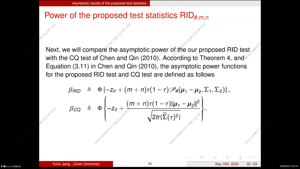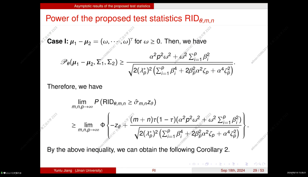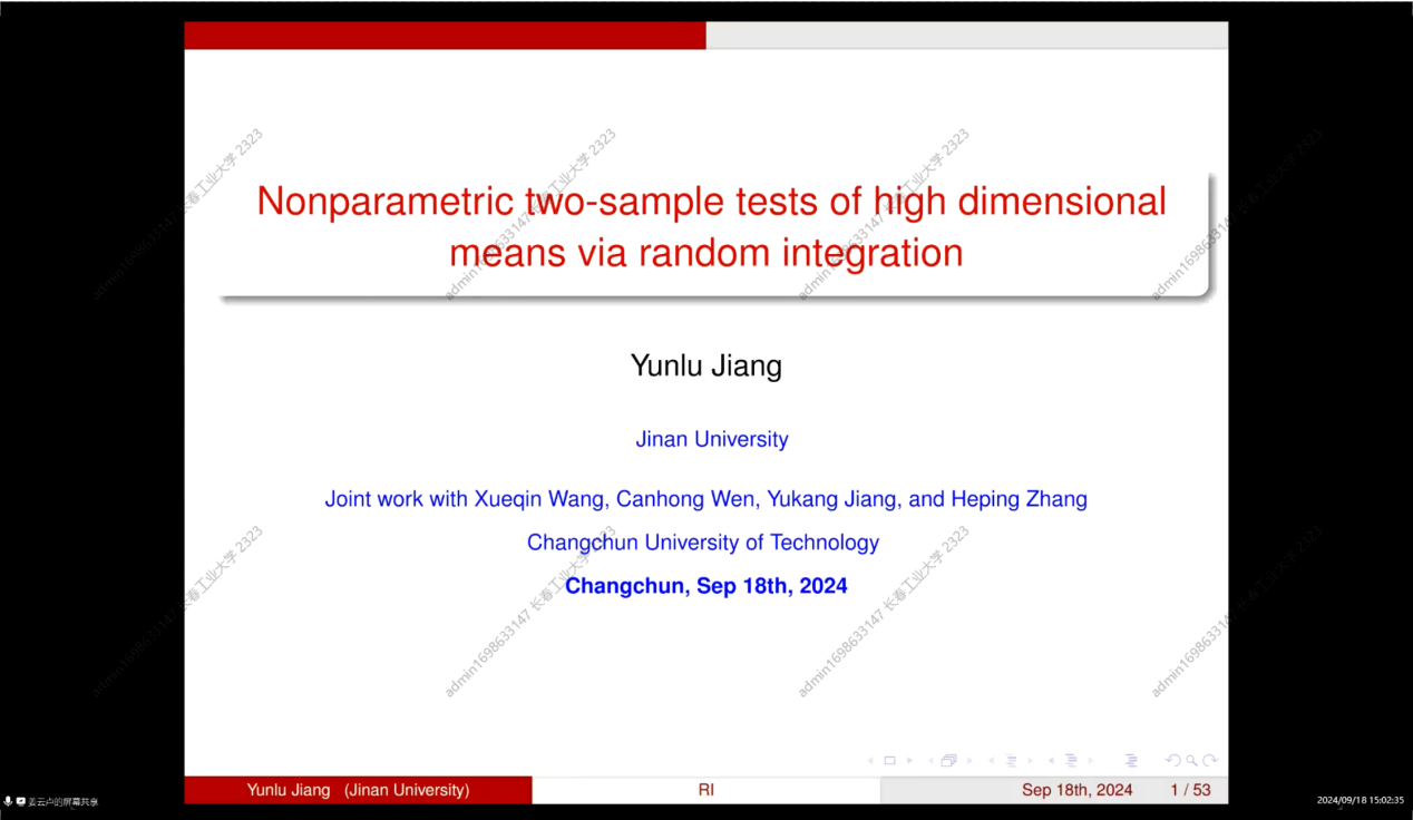 (通讯员:关迪)2024年9月18日下午13:00,暨南大学经济学院统计学系教授姜云卢为我院做线上学术报告,本次报告由澳门十大信誉好的网站承办,由学院副院长杨凯副教授主持,学院部分老师、研究生参加了本次线上学术报告会。