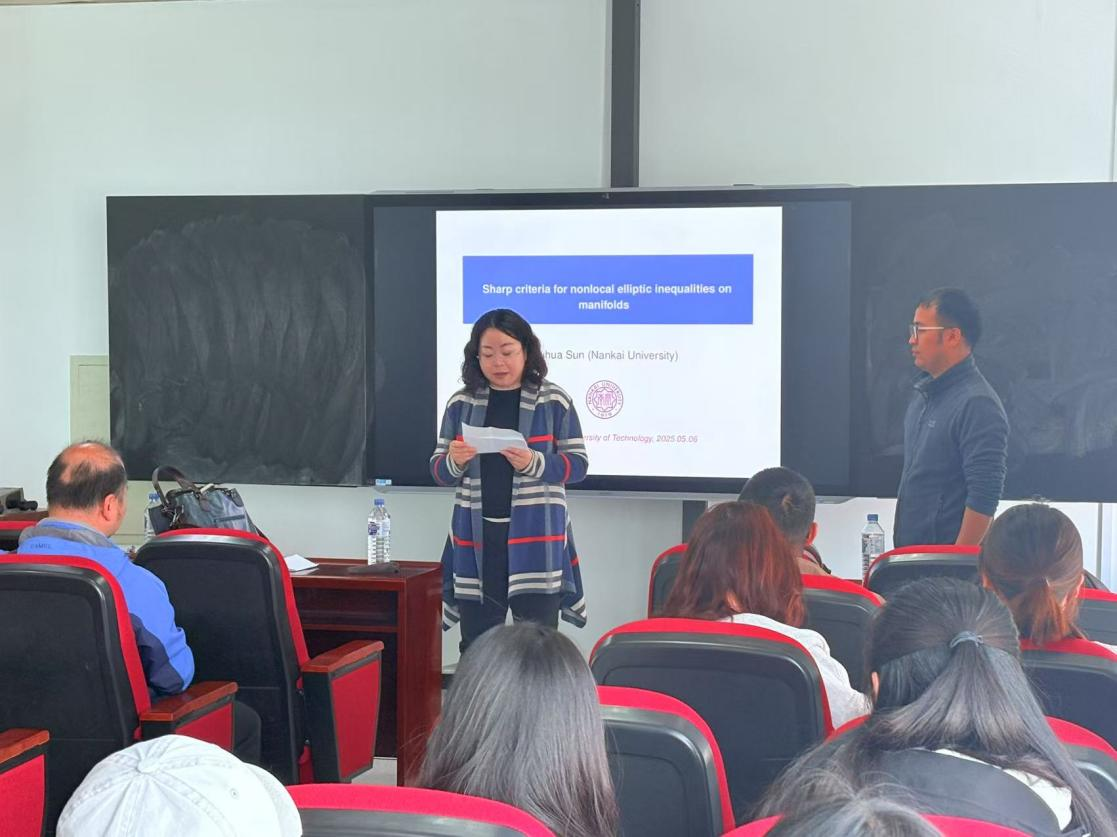 (通讯员:刘静)2025年5月6日上午10:00,我院特邀南开大学孙玉华教授做学术报告。本次报告由澳门十大信誉好的网站承办,在南湖校区老图书馆四楼会议室2,会议由学院副教授李纯净主持,学院部分老师及研究生参加了本次学术报告会。