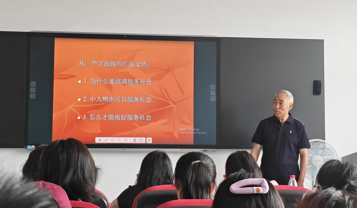 接下来庞教授围绕社会服务这一核心主题,展开了深刻而生动的分享。他首先深入剖析了为什么要强调社会服务,从时代发展的宏观背景出发,结合社会进步的内在需求,阐述了社会服务对于构建和谐社会、推动公共事业发展的重要意义,让在场听众深刻认识到社会服务并非可有可无,而是与每个人的生活息息相关,是社会运转不可或缺的重要环节。教授着重强调了小人物也可以服务社会这一观点,让研究生们明白,无论身份高低、能力大小,只要心怀善意、付诸行动,每个人都能在自己的岗位和生活中为社会贡献一份力量。最后,庞智强教授详细探讨了怎么才能做好服务社会。他从树立正确的服务理念、提升自身的服务能力、找准服务社会的切入点等多个方面,给出了切实可行的建议和方法。