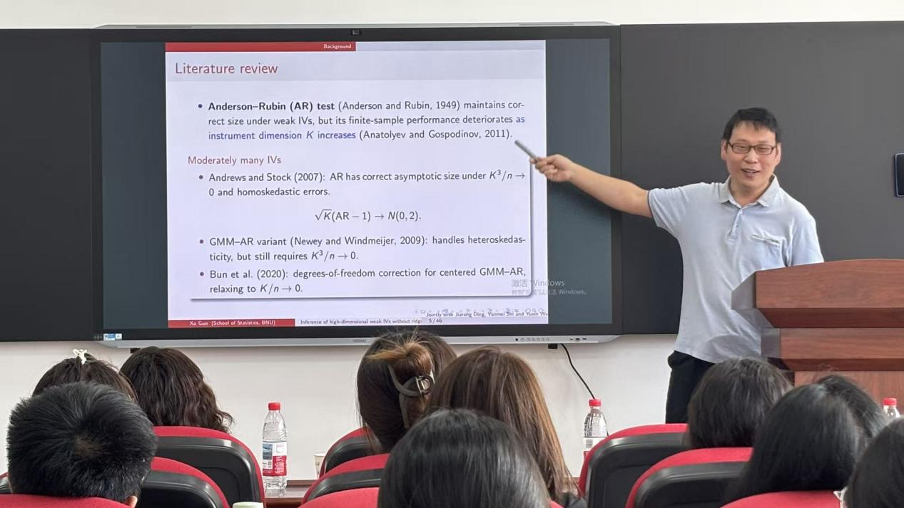 (通讯员:刘思彤)2025年9月2日上午10:00,我院特邀北京师范大学统计学院郭旭教授做学术报告。本次报告由澳门十大信誉好的网站承办,在北湖校区新楼218,会议由学院副院长李纯净副教授主持,学院部分老师及研究生参加了本次学术报告会。会议开始之际,李纯净老师作为代表对郭旭教授的到来表示感谢,并对郭教授及其研究内容做了简单的介绍。