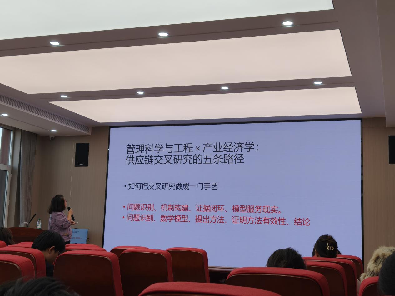 报告伊始,钟翠萍教授聚焦“管理科学与工程×产业经济学”在供应链领域的交叉研究,探讨如何将这类交叉研究打磨成实用的“手艺”,该研究明确了两类研究逻辑:一类是更贴近实践的路径——从问题识别出发,先构建影响机制,再通过证据闭环验证,最终让模型服务于现实需求;另一类则偏向传统学术范式——以问题识别为起点,构建数学模型、提出研究方法,再证明方法的有效性并得出结论。钟教授表明前者更强调研究的落地价值,后者侧重方法的严谨性,两者共同支撑起供应链交叉研究的实践与学术维度。