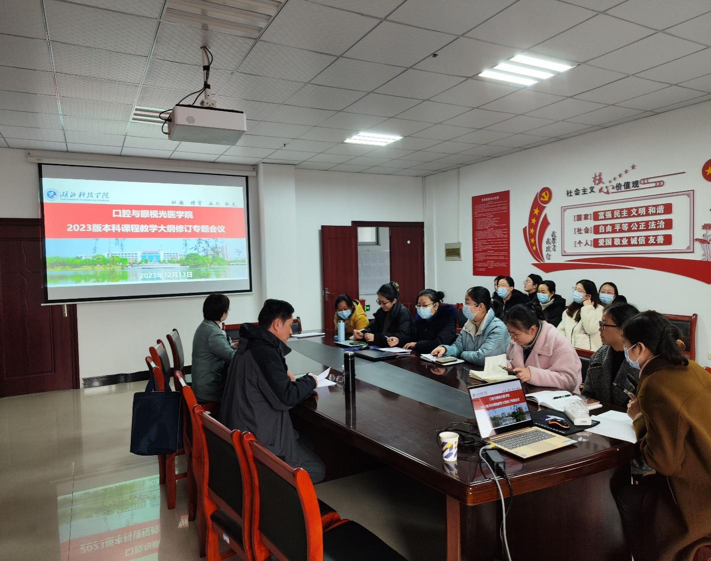 (通讯员:李淑华)为落实立德树人根本任务,更新教育教学理念,深化教育教学改革,根据《湖北科技学院人才培养方案管理办法》 和《湖北科技学院关于修订2023版人才培养方案的指导意见》,保证2023 版本科课程教学大纲编写工作高质量完成,beat365中文官方网站于2023年12月13日上午9:00在医药楼3栋五楼会议室召开了课程教学大纲修订专题会议。会议由分管教学副院长黄玉婵主持,beat365中文官方网站全体专任教师参加会议。