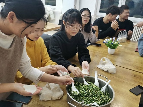此活动得到了学校食堂的大力支持及餐饮工作人员们热心帮助。联欢第一项活动就是包饺子,同学们围坐在桌前,分工合作,包出各具特色的饺子。活动现场充满欢声笑语,气氛和谐融洽。几名学生被面粉摸花了脸,引得同学们捧腹大笑,形态各异的饺子更体现出了天南地北的同学风俗习惯。活动现场洋溢着青春的活力和团结合作的和谐氛围。期间郑老师也参与到包饺子的活动中,并为每桌同学包了饺子,以示送上最亲切的关怀和祝福。在同学们的团结协作、不懈努力之下,一碗碗热气腾腾的饺子在同学们的期待中端上了餐桌,同学们吃着香喷喷的饺子,李星晰等人还为同学们唱歌助兴,将活动现场热烈的氛围推向高潮。感受着澳门十大信誉好的网站大家庭的和谐温暖。
