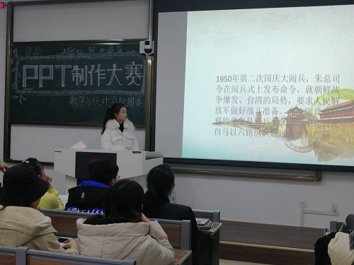 比赛的开始前,主持人宣读了比赛的评分要素和评分标准。本次比赛共有19名选手参赛,他们从“纪念新中国成立70周年”、“学风建设”、“大学生涯规划”三个主题中任选其一作为PPT的核心思想。比赛中选手们积极配合主持人的安排,用饱满的热情向评委和观众展示了自己制作的PPT。选手们在自己的PPT中插入了背景音乐、视频、图片、动画等元素,使得PPT内容更加丰富多彩,向评委们充分地展示了自己制作PPT的技巧。在激烈的竞争中评委们秉持“公平、公正、公开”原则,实事求是,进行现场打分现场公布,最终评选出一等奖王畅、闫新洋;二等奖陈铭、宋佳、张辛楠、王曼;三等奖许海梓,张越,肖喆煜,优秀奖申天勋,丁嘉雯,梁兴华等同学。比赛既增加了同学们对PPT技术的兴趣,同时又提供了一个广阔的交流平台,比赛选手们和未能参赛的其他同学们都期待下一次精彩的创新作品。