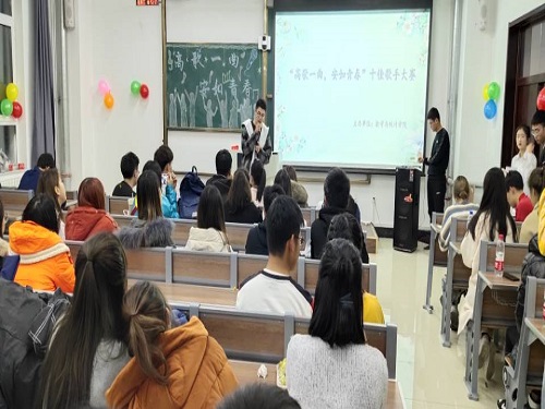 澳门十大信誉好的网站团委讯(通讯员:陈铭)为丰富同学们的课余生活,努力营造积极向上、健康文明的校园文化气氛,展示同学们的文艺风采。澳门十大信誉好的网站于2019年11月15日晚18时30分在主楼315教室举办了主题为“高歌一曲,安如青春”歌唱比赛活动。2019级学生李星晰、蒋石磊、等七名同学参加比赛,吕丹阳,陈晗同学担任赛会主持人。