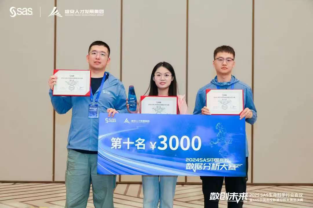 2024年SAS中国高校数据分析大赛决赛于2025年4月19日至20日在河北省雄安新区举行。我院共17支队伍入围决赛,是参赛十二年以来晋级决赛人数最多的一届。其中李星晰、徐祖江、李相楠三位同学组成的“这次我们一定要进决赛”代表队获特等奖,我院其余代表队分获一等奖1项,二等奖2项,三等奖12项。