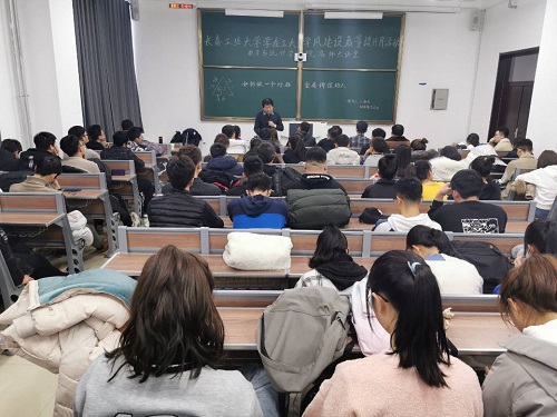 在报告会中,王新民老师指出,如何做一个对社会有价值的人,就是提升自身存在的价值,形象地将价值比做成一个以知识、素质、能力为三条边的三角形,并由“等边三角形的面积最大”这一数学理论教导学生们若想成长为一个成功有价值的人,就要将三者均衡发展;接着,王老师以自己的学业经历为例,向学生们详细地讲述一个人要想走向成功,必须明白成功的必要条件是“简单”、“坚持”、“爱”五个字。王老师结合专业课中一些令学生难以理解的复杂公式作例,用幽默风趣的方式将其转变成通俗易懂的理论。王老师旁征博引,讲到每个人都有欲望,但是欲望也有极限,欲望值不要过高也不要过低,并且要控制在自己的能力范围内。报告会的最后,学生们积极向王新民老师提出自己在学习生活中产生的疑惑,王新民老师耐心详细地解答了学生的问题。