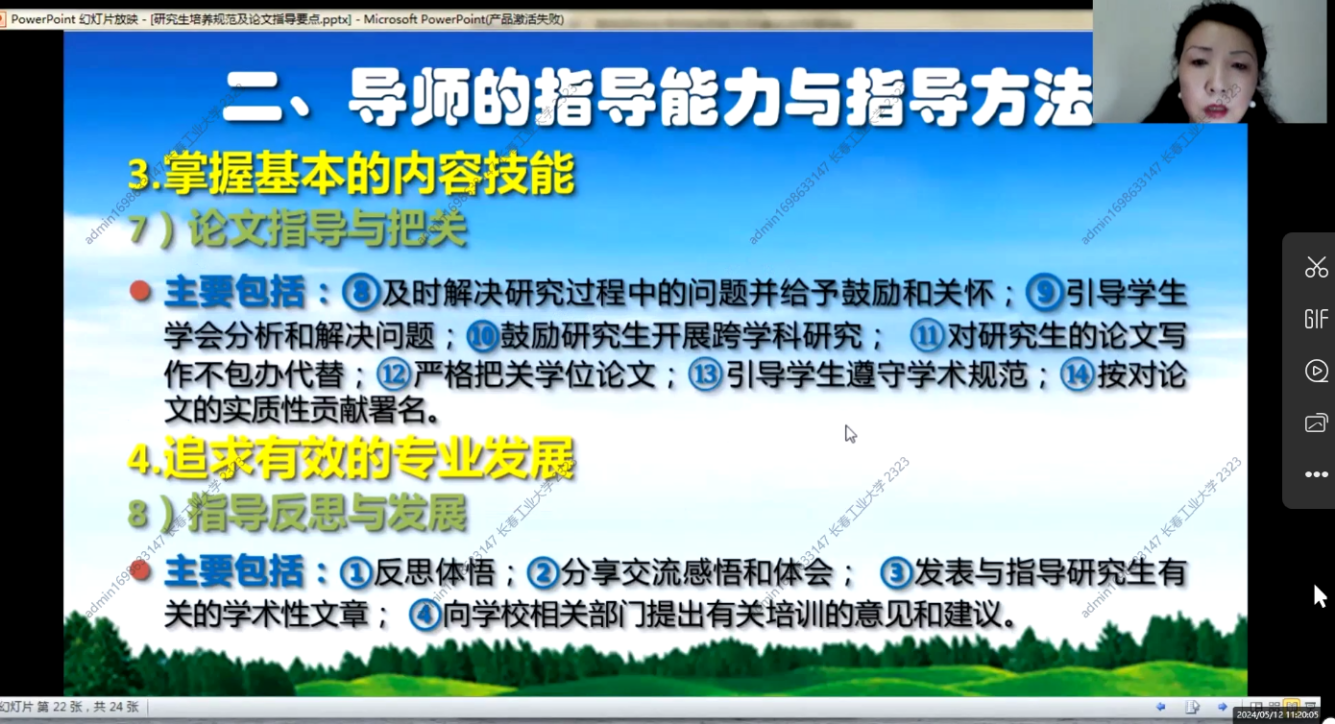 此次培训系统全面,内容丰富,对研究生培养规范及论文指导要点做了细致的培训,立德树人根本任务给予了深入细致的指导,对加强导师队伍建设,促进学科建设和研究生教育高质量发展具有重要意义。