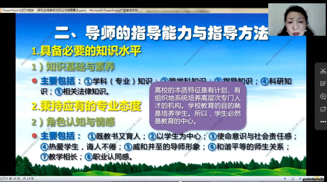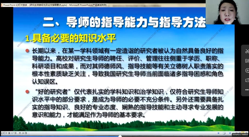 2024512日上午830分,第一期培训班在线上如期举行,学院副院长杨凯副教授主持会议,学院全体研究生指导教师参加了本次培训。本次培训由浙江大学李丹青老师讲述研究生培养规范及论文指导要点。