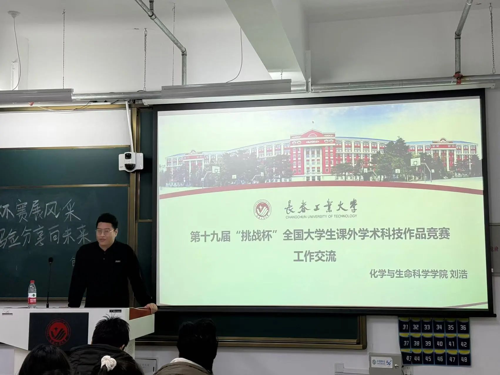 澳门十大信誉好的网站于2024年12月9日下午六点在北湖东区主教学楼201教室开展了“挑战杯”竞赛赛前经验交流分享会,特别邀请挑战杯第十八届全国大学生课外学术科技作品竞赛二等奖团队负责人刘浩,2024年挑战杯吉林省大学生创业计划竞赛金奖团队负责人曹馨月为大家做经验分享交流。
