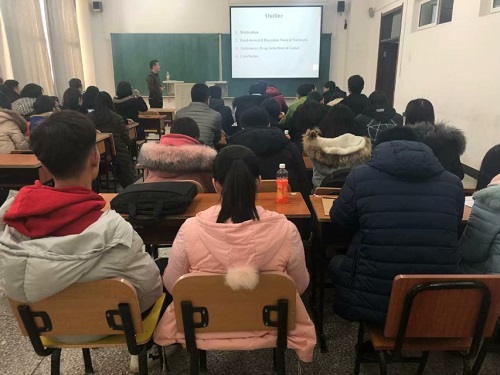 报告会上,李启寨教授以“Bayesian neural networks for selectionf drug sensitive genes”(选择药物敏感基因的贝叶斯神经网络)为题,向同学们展示了统计学在医学上的重要性。他从寻找抗癌药物基因的建模说起,指出了目前存在的三大困难,随后利用前馈贝叶斯神经网络针对三大难题分别给出了相应的改进:首先用一个非线性函数描述因变量与自变量的关系,再通过变量选择对自变量进行降维,通过数值模拟显示了提出方法的有效性,最后成功应用到抗癌药物响应问题中。让大家深刻领略到了统计学在生物医学中的重要性,对十大信誉师生的学习和科研具有重要的启发意义。