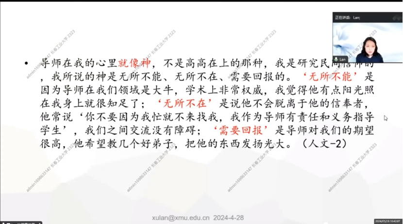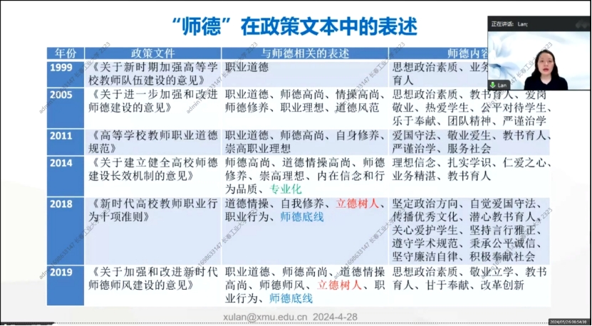 (通讯员:关迪)为贯彻落实习近平总书记关于研究生教育工作的重要指示精神,落实研究生导师立德树人根本任务,提升研究生导师教书育人能力素质,切实保障十大信誉研究生培养质量,促进学校研究生教育事业高质量发展。根据《教育部关于全面落实研究生导师立德树人职责的意见》(教研〔20181号)、《澳门十大信誉好的网站研究生指导教师培训管理办法》(研字〔20227号)等文件精神,澳门十大信誉好的网站于2024526日上午830分,第三期培训班在线上如期举行,学院副院长杨凯副教授主持会议,学院全体研究生指导教师参加了本次培训。本次培训由厦门大学徐岚老师讲述导师指导过程与师生关系如何影响研究生培养质量。