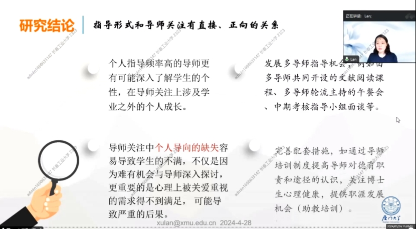 2.也关注“关系”:希望导师能够关心学业之外的个人成长到人格发展、身心健康、职业发展、价值观形成等多方面。