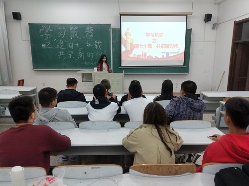 澳门十大信誉好的网站团委讯(通讯员:高帅帅 桂尚珂)为了纪念建国七十年,激励我院学生干部以实现民族伟大复兴为己任,提升自身素养、不断开拓视野,我院于2019年9月17日晚6点30分在教图楼209教室开展了以“建国七十载,共筑新时代”为主题的“学习筑梦”活动。18级全体学生干部参加此次活动,会议由180802班团支书张宁馨主持。